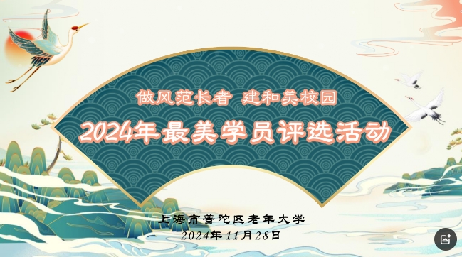 “生活不能因为退休而变得平淡,仍旧应该绚丽丰富,甚至应该更加精彩!”近日,普陀区老年大学举办了2024年度“最美学员”讲述活动。活动发布后,受到老年学员的广泛关注,通过教师推荐、班级推荐及自荐等方式,学校收到了众多学员的申请材料,经校内评审小组的初步筛选,最终确定20位学员代表入围。
