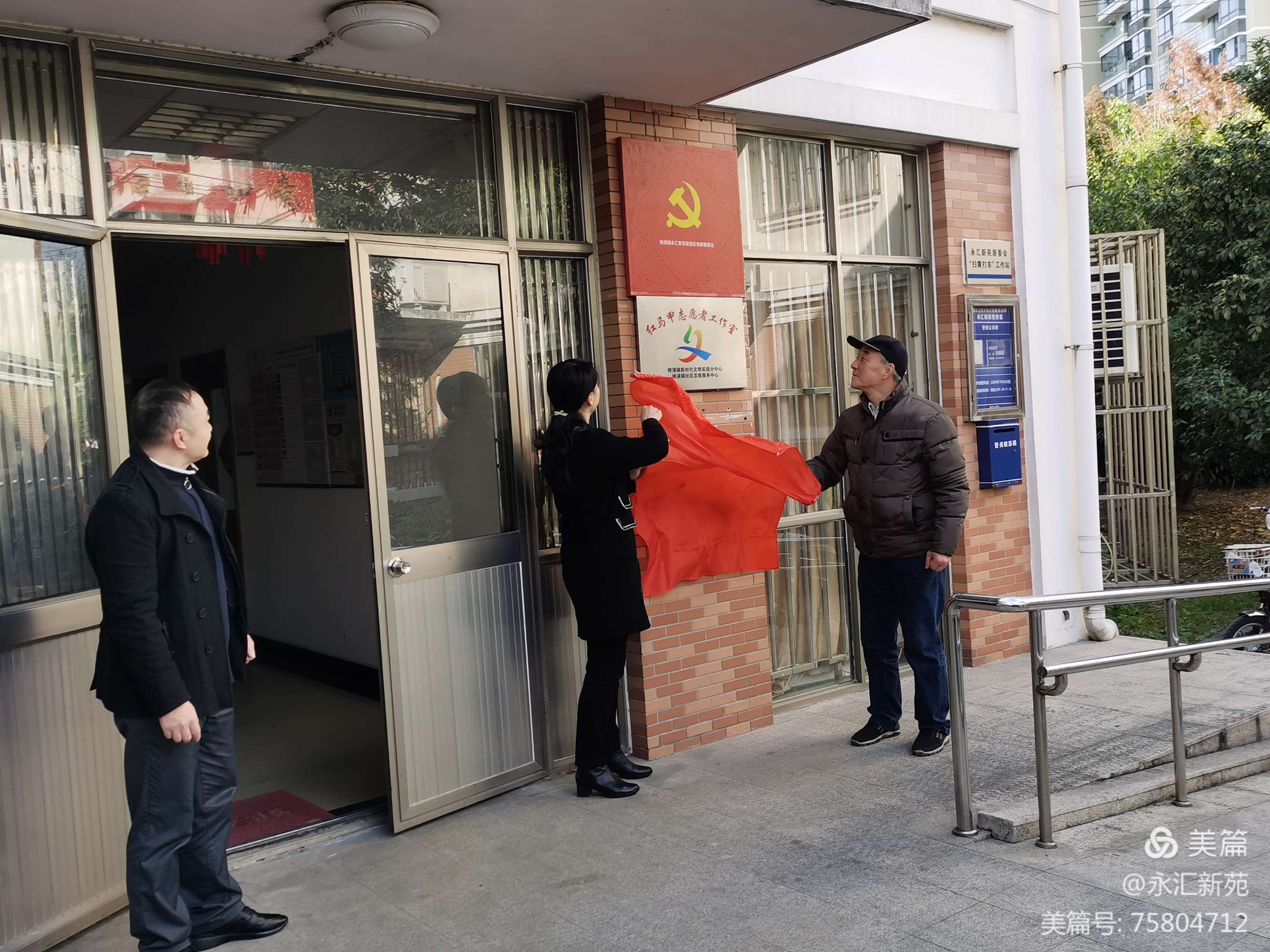 2020年12月15日下午,永汇新苑居委会举行“红马甲”志愿者工作室揭牌仪式。桃浦镇文明办徐琳同志、上海杨兆顺社区工作室杨兆顺同志,“红马甲”志愿服务队队长朱雪春同志,共同为“红马甲”志愿者工作室揭牌。