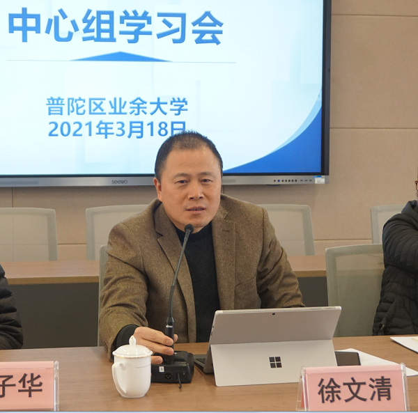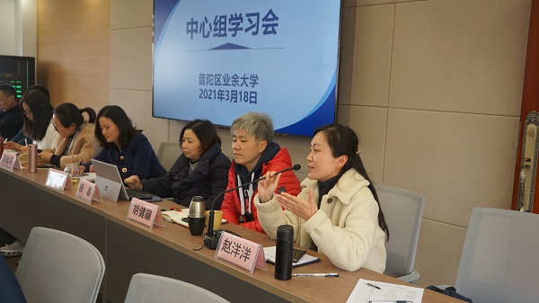 3月18日下午,普陀区业余大学召开2021年第二次中心组学习会,会议由校党总支副书记、副校长张凤芳主持。